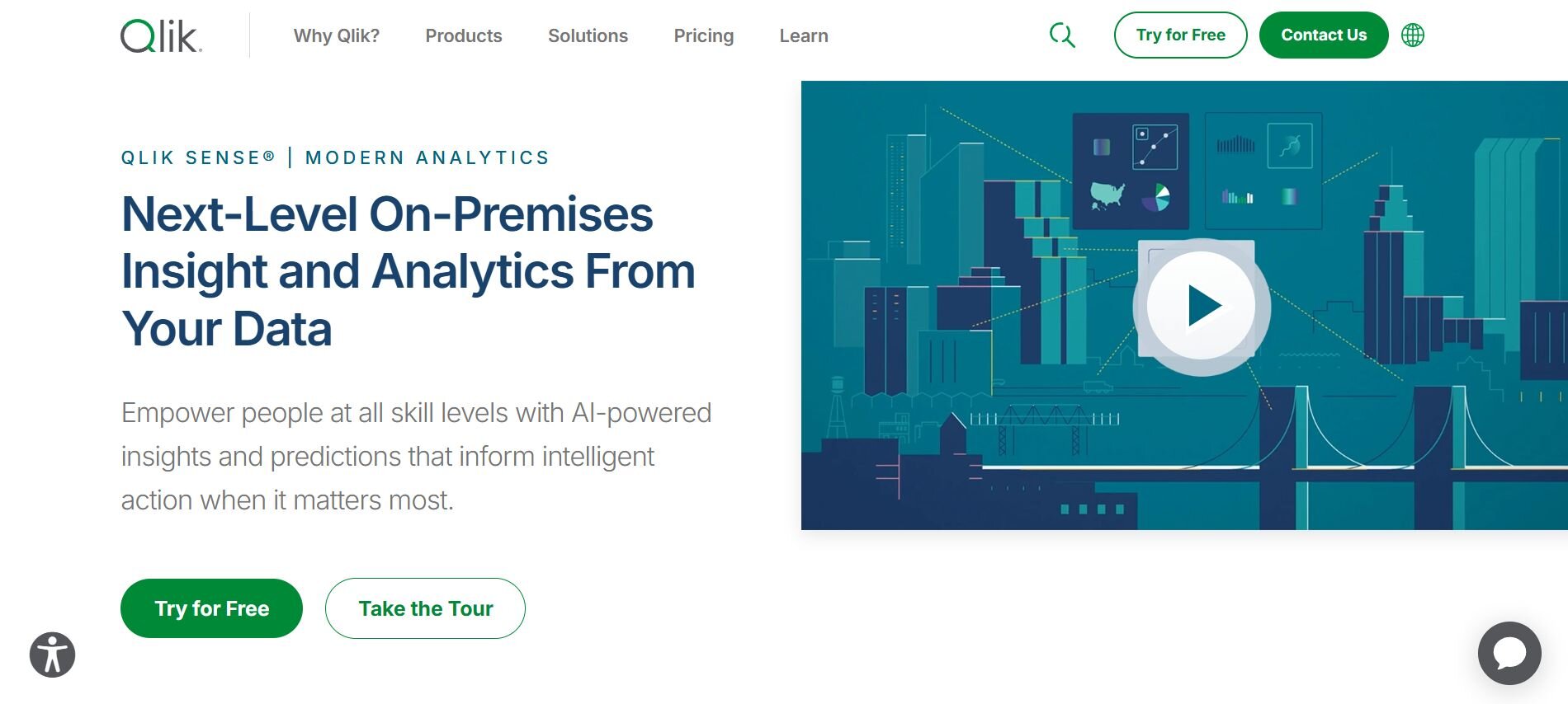 • Key strength: Interactive dashboards with live data feedsQlik Sense — Best for AI-driven BI exploration