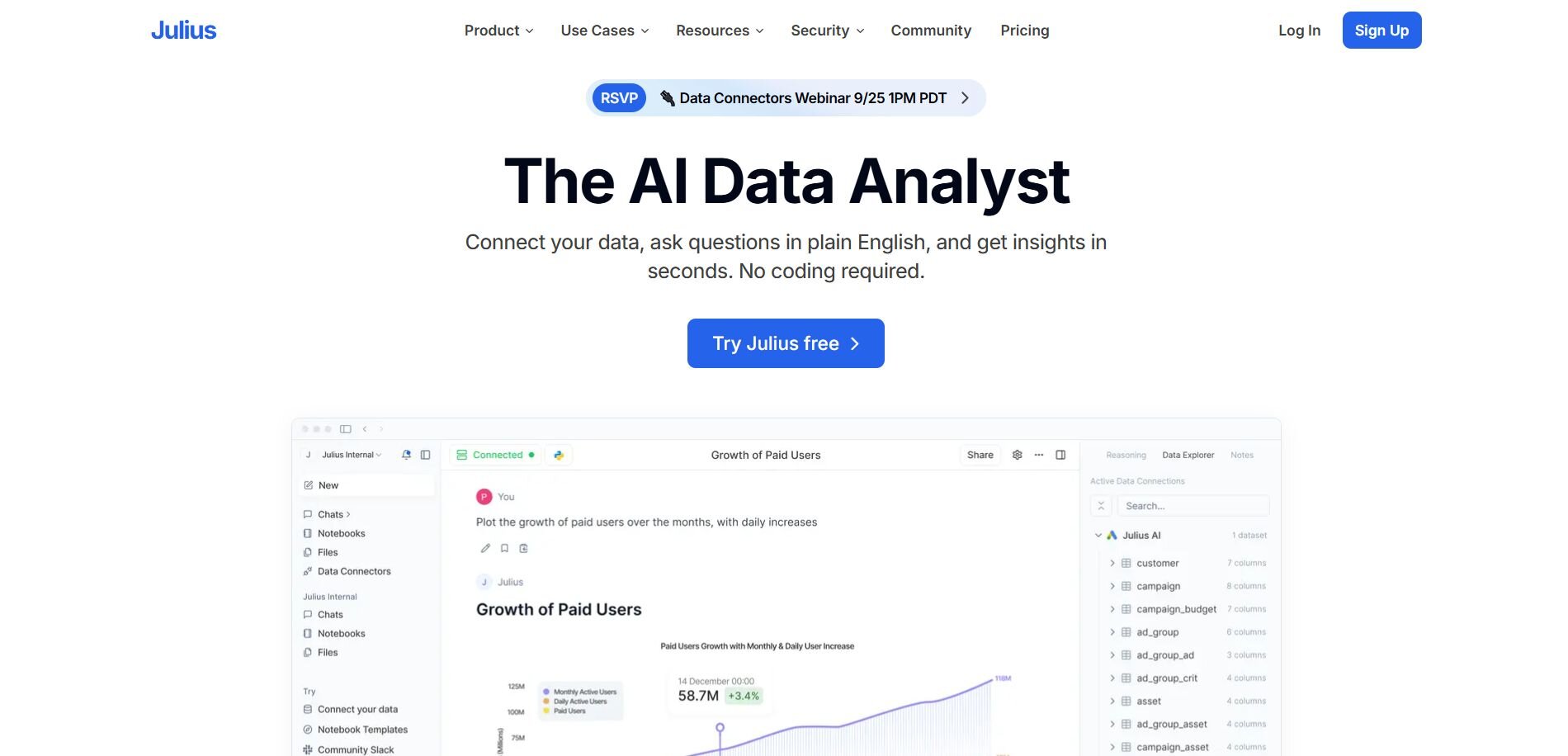 What it does: Julius is an AI analytics platform that turns plain-English questions into instant, real-time charts and tables.