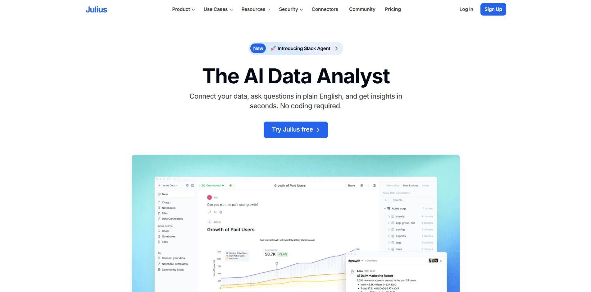 Julius makes analysis practical for teams that need fast, accurate insights from connected data. It handles reporting, visualization, and automation in one place, using natural language to create charts and summaries that update as data changes. For business users, I think it’s a good alternative to manual dashboards and complex analytics setups.