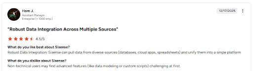 Qlik Sense: Qlik Sense uses an associative data model, which means you can explore connections across your data in ways that filter-based tools donβt support as easily. It's a good fit for enterprise teams dealing with complex, multi-source data environments where relationships between datasets matter. However, the learning curve is steeper than most tools on this list.