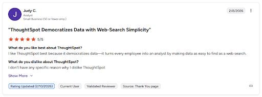 What it does: ThoughtSpot is an analytics platform that lets you search your data using natural language and get visualizations and insights from a live data warehouse based on your queries.