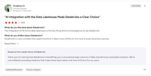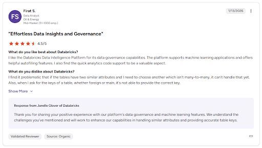 Lakehouse architecture reduces the need to manage separate data warehouse and data lake systems | Requires strong technical expertise to get meaningful output from the platform |