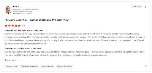 Mobile experience gives executives access to live data without needing a desktop app | The breadth of features can make the platform harder to navigate for new users |