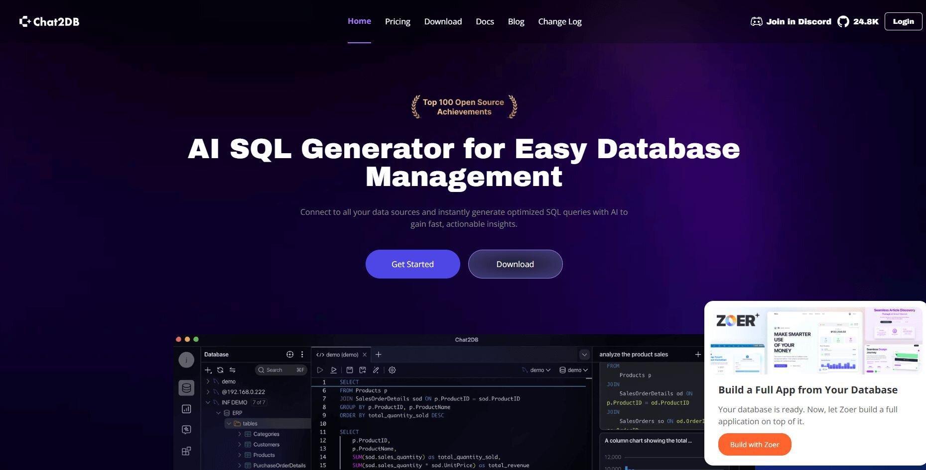 Visual database browsing with AI query help | Open source AI queries with support for many databases | ||
