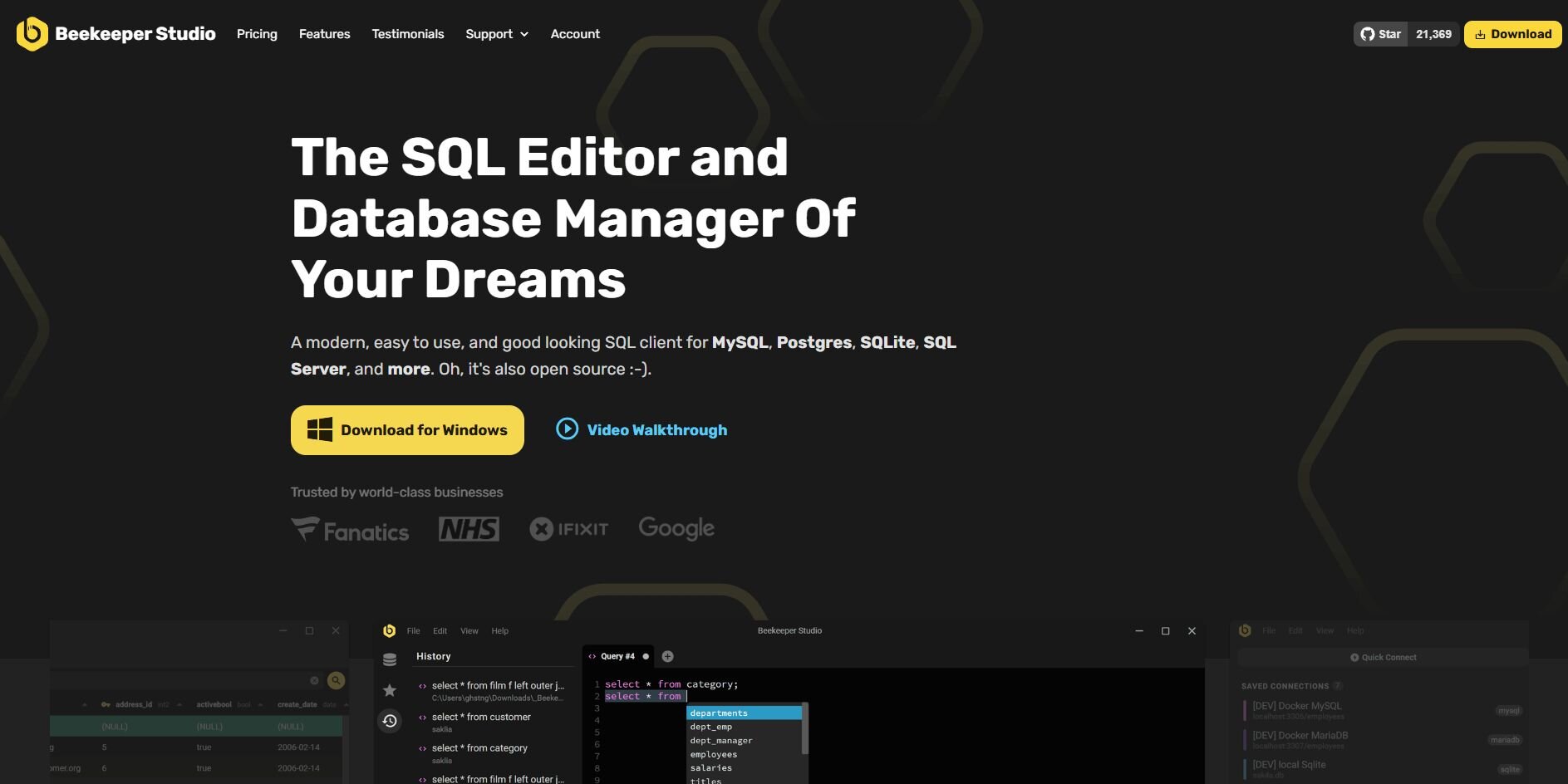 Cross-platform SQL editing with AI suggestions | Open source client with an AI assistant for SQL and a clean UI | ||